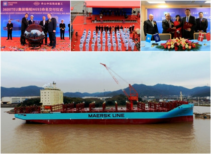 舟山中远海运重工交付第六艘马士基3600TEU集装箱船“VILNIA MAERSK”