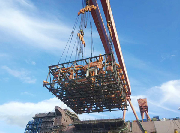 据了解,YAMAL LNG项目首制船货物机械室整体??橹卮?50余吨,包含了11台重要的低温设备及货物机械室内所有的低温管和常温管。“大集成”之后的货物机械室???,消除了模块间与反顶相连的合龙管,且分段搭载期间实现了低温管同期建造,分段成型后直接将整体模块吊上船,大大提高了生产效率,减少了船上交叉作业。吊装前,建造团队做好工艺策划、精度把控和风险评审;吊装中,相关部门密切配合,通力协作,确保了高效安全。此外,由沪东中华所属东鼎公司建造的3号、4号舱泵塔同时通过了船东的完工尺寸验收,实现了泵塔制造方面的突破和飞跃。