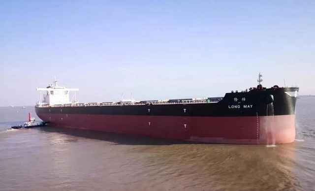 ????4月23日,中国船舶集团旗下外高桥造船为美国福茂集团建造的21万吨散货船“隆梅”号签字交付。“隆梅”号长299.88米,型宽50米,型深25.2米,设计吃水16.1米,满足国际海事组织(IMO)TIER III 排放标准和散货船、油船协调共同结构规范(HCSR),并安装了脱硫装置,入级美国船级社。