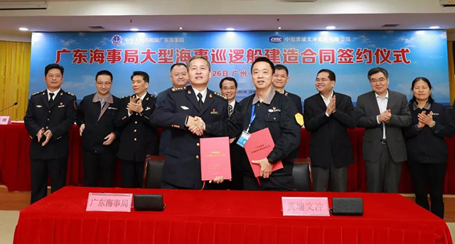 3月26日,广东海事局大型海事巡逻船建造合同签约仪式在中船黄埔文冲船舶有限公司(下简称:黄埔文冲公司)长洲厂区举行。
