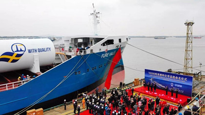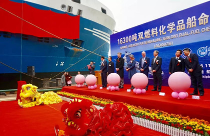 11月17日,由中航船舶承接、中航鼎衡为瑞典船东FURETANK航运公司建造的16300吨化学品船4#船(AD0029)举行了命名仪式。