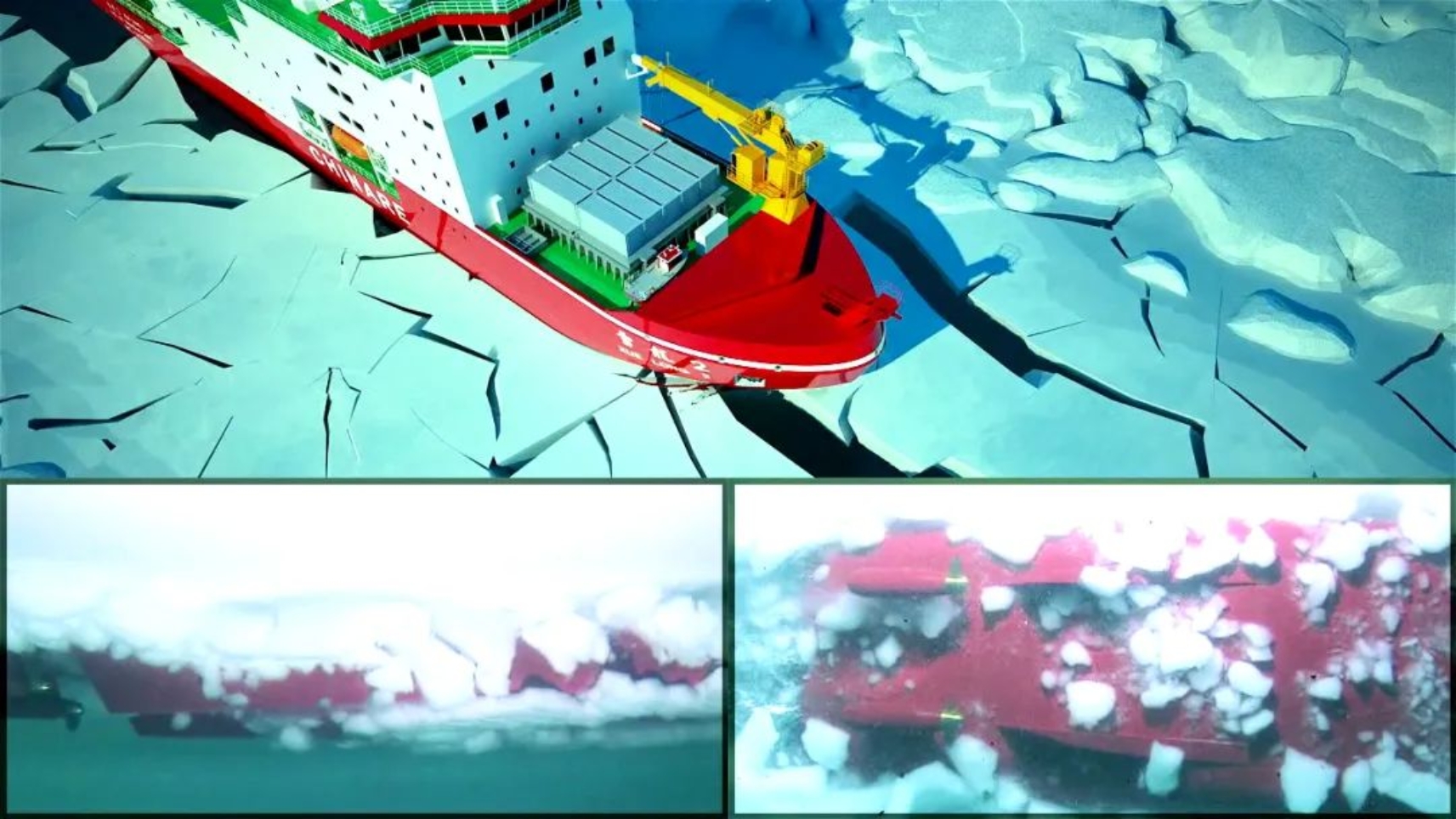该船融合了国际新一代考察船的技术、功能需求和绿色环保理念,采用国际先进的船艏船艉双向破冰船型设计,具备全回转电力推进功能和冲撞破冰能力,艏向能以2~3节的航速在冰厚1.5米+雪厚0.2米的条件下连续破冰航行,艉向可突破极区20米当年冰冰脊,并可实现极区原地360°自由转动。