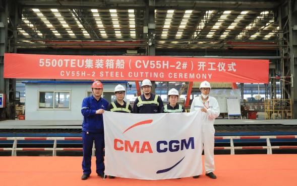北海造船5500TEU集装箱船2号船开工 2022/07/21 03:19:20 7月15日,中国船舶集团旗下中国重工子公司青岛北海造船为CMA CGM建造的5500TEU集装箱船2号船顺利开工。