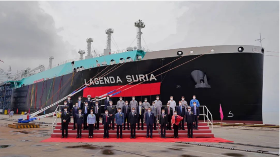 中国船舶集团交付79960方LNG首船 2022/05/27 09:06:35 5月26日,中国船舶集团有限公司旗下中国船舶工业贸易有限公司和沪东中华造船(集团)有限公司作为联合卖方,为马来西亚国家石油公司建造的79960立方液化天然气(LNG)首制船“传奇太阳”号顺利举行了“云交船”仪式