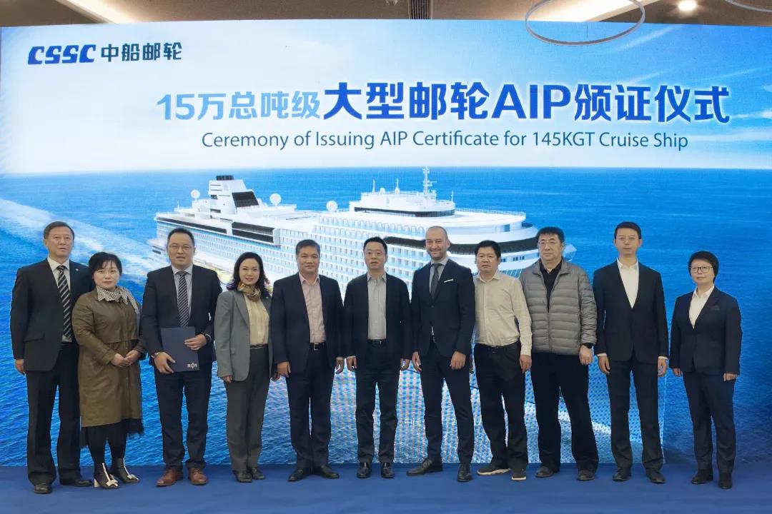 开启中国大型邮轮自主设计新时代 2021/12/10 08:02:54 中国船舶集团旗下中船邮轮自主研发设计的15万总吨级大型邮轮获得意大利船级社原则性认可(AIP)证书