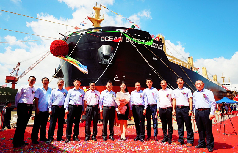 扬州中远海运重工承建民生金融租赁12艘6... 2018/08/30 12:00:00 8月29日,扬州中远海运重工为民生金融租赁建造的64000吨散货船(CIS64000-54)“OCEAN OUTSTANDING”轮命名交付,至此该系列12艘船舶的建造画上一个圆满的句号。