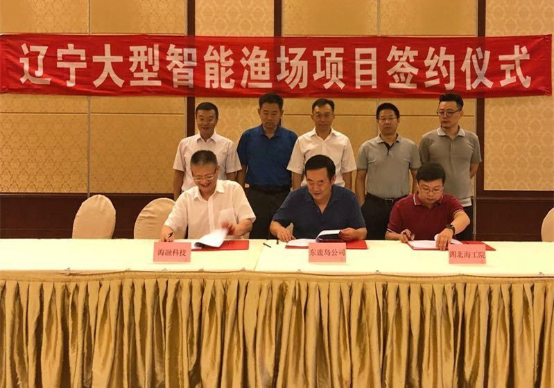 湖北海工院签署辽宁大型智能渔场项目 2018/08/29 12:00:00 8月24日,武船集团旗下的湖北海洋工程装备研究院有限公司和中船重工海融装备(海南)有限公司与大连东鹿岛海洋科技有限公司在辽宁省大连市签订了《辽宁冷水团超大型智能渔场项目装备研制合作协议》。