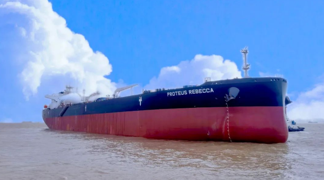 中船贸易联合外高桥造船向交银租赁交付一艘... 2022/10/25 03:47:43 10月24日,中国船舶集团有限公司旗下中国船舶工业贸易有限公司联合上海外高桥造船有限公司为交银金融租赁有限责任公司建造的一艘10.9万吨双燃料原油/成品船“PROTEUS REBECCA”号顺利交付。交银租赁航运租赁部副总经理范琳娜,中船贸易、外高桥造船等各方代表出席该船交付仪式。