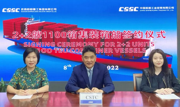 中船贸易联合武船重工承接希腊船东支线箱船... 2022/08/31 09:48:30 日前,中国船舶集团旗下中国船舶工业贸易有限公司联合武昌船舶重工有限责任公司成功承接希腊船东2+2艘1100TEU集装箱船新造船项目,各方代表以“云签约”形式签署建造合同。