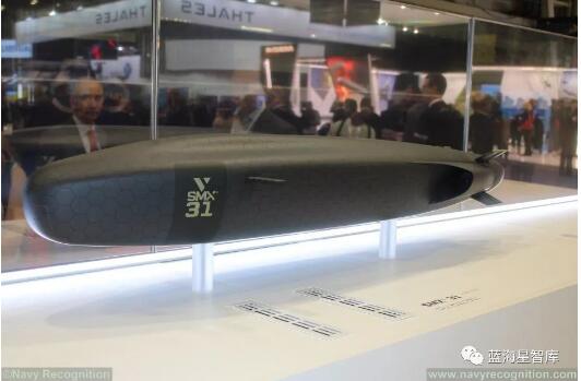 图 9 SMX-31潜艇概念图 法国舰艇装备集团新推出的SMX-31型设计排水量为3000吨,艇长为70米,宽13米,高9.7米,最大潜深超过250米,最大航速20节,续航力30-45天,可搭载鱼雷、导弹等武器16-46枚。