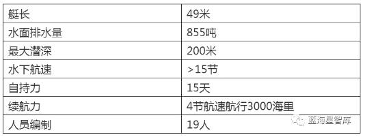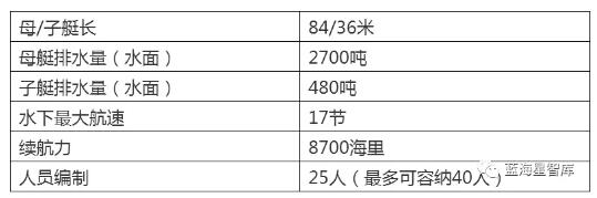 图 4 SMX-24潜艇概念图 表 4 SMX-24潜艇的主要参数