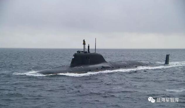 图1 “北风”级战略核潜艇 “亚森”级攻击型核潜艇水下排水量13800吨,最大潜深600米,装备“口径”(SS-N-27反舰、SS-N-30对陆攻击)巡航导弹、“海星”(SS-N-15)反潜导弹等武器。1艘在北方舰队服役,5艘同步在船厂建造,计划2020年前交付海军。
