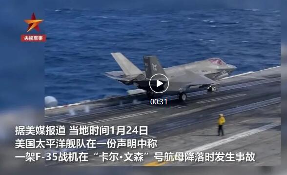 美F-35战机在南海与自家航母相撞 2022/01/25 12:39:31 24日当天一架美国海军F-35战斗机撞上了“卡尔·文森”号航母甲板,飞行员弹射逃生,7人在此次事故中受伤。