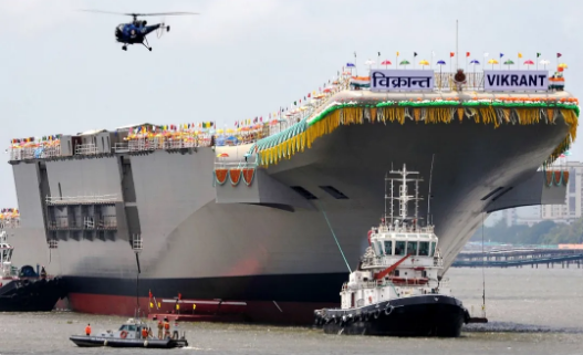 印度首艘国产航母,首次海试 2021/08/05 09:26:26 印度第一艘自主设计和建造的航空母舰“维克兰特”号当天在南部喀拉拉邦科钦海岸附近开始首次海上试验。