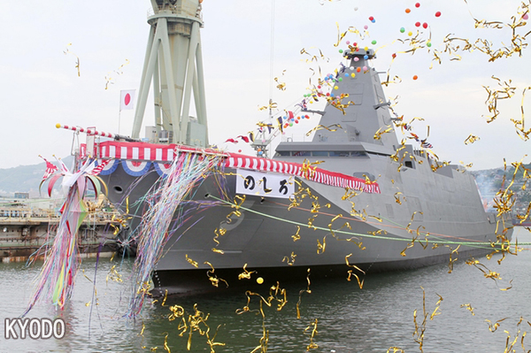 日本自卫队最新护卫舰“能代号”下水 2021/06/22 06:45:00 日本海上自卫队新型护卫舰“FFM”的命名及下水仪式6月22日在三菱重工长崎造船厂举行,该舰被命名为“のしろ(Noshiro,能代号)”。