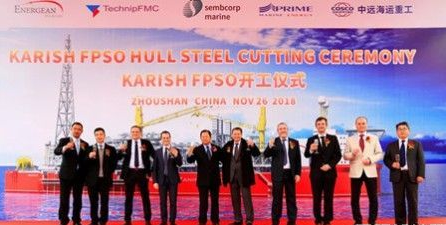 图:11月26日,由中远海运重工为希腊Energean建造的Karish FPSO船体项目正式开工。