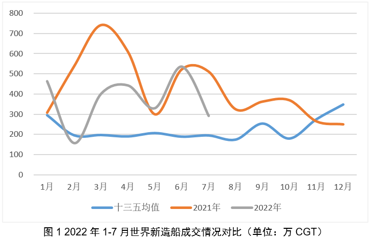 LNG船“超越”箱船成为市场主角——20... 2022/08/16 04:02:05 世界新造船市场7月成交量下滑较大,全年累计成交量降幅扩大。2022年7月,世界新造船市场成交617万DWT、292万CGT,同比分别下降48.3%和42.9%。