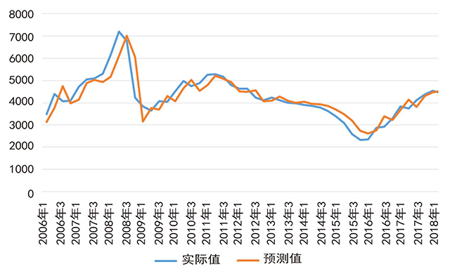 通过预测价格与实际价格的对比发现,该模型能够比较准确地预测出短期内的船板价格。根据该模型,可推算出2018年第三季度12?C20mm船板价格约为4356元/吨,相比第二季度的船板价格略有下降。