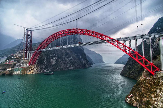 世界最大跨度钢箱桁架推力拱桥钢主梁合龙 2018/12/29 12:00:00 12月27日上午,随着最后一节钢主梁成功吊装就位,由武船重工股份承建的世界最大跨度钢箱桁架推力拱桥钢主梁顺利实现合龙,合龙仪式在桥址南岸举行。