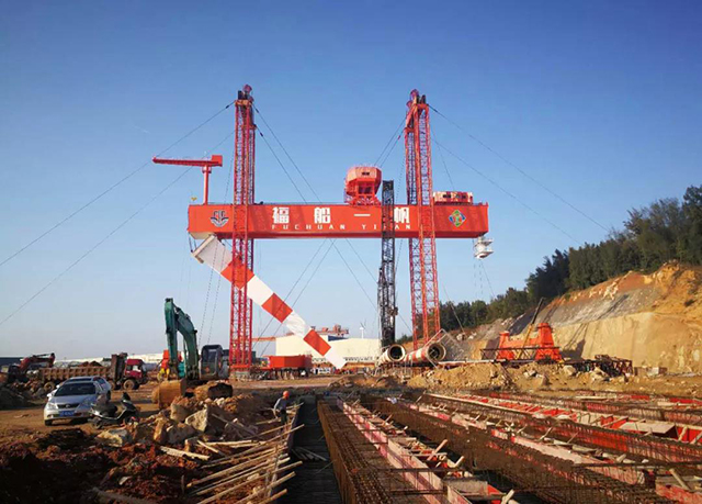 福船一帆1200T龙门吊完成主梁顶升 2019/04/01 12:00:00 3月27日晚7点整,经过连续8个小时的作业,福船集团 福船一帆六鳌重装码头工程1200T龙门吊主梁顺利顶升到位。