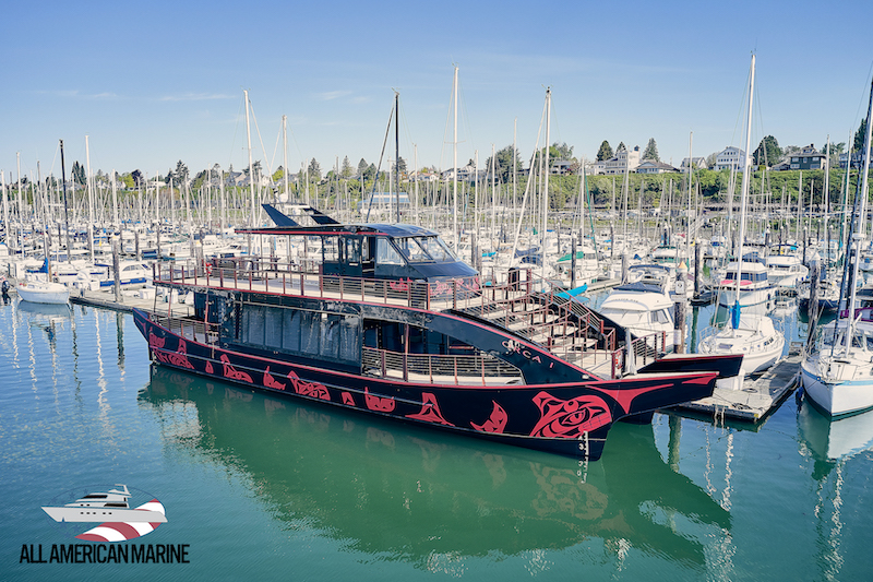 近日,全美海洋公司(All American Marine)为GWA旅游公司建造的首艘双体船游艇下水。第2艘将在6月下水。该艇由新西兰一家公司设计,尺寸为80X27英尺,铝制,载客149名,装有2台卡特彼勒C18发动机,2100转/分时功率803马力,将在普吉湾运营。(船舶在线 译)