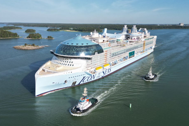世界最大邮轮即将开始海试 2023/06/28 02:51:16 皇家加勒比邮轮公司建造的世界最大豪华邮轮海洋标志号已完成建造,即将开始海试。该船长365米,排水量25万吨,可载5610名游客和2350名船员,预计在2024年投入运营