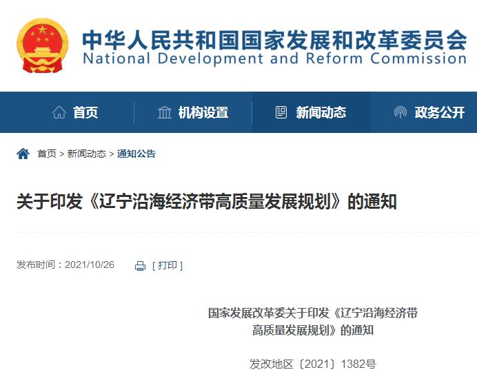 关于印发《辽宁沿海经济带高质量发展规划》... 2021/10/29 07:46:35 《辽宁沿海经济带高质量发展规划》已经国务院批复同意(国函〔2021〕91号),现印发给你们,请按照国务院批复要求和规划明确的目标任务,加强组织领导,分解落实责任,完善政策措施,认真组织实施