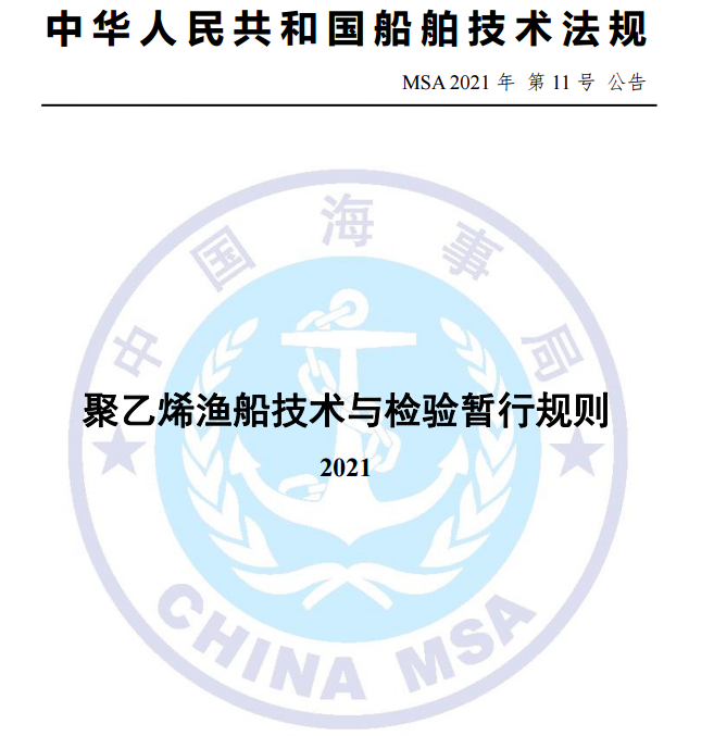 建造聚乙烯渔船有规可依 渔船家族再添新员... 2021/11/30 08:32:05 交通运输部海事局发布《聚乙烯渔船技术与检验暂行规则(2021)》(以下简称《规则》),明确船长24米以下聚乙烯渔船的设计、建造、营运、检验、检测要求,《规则》自公布之日起施行。