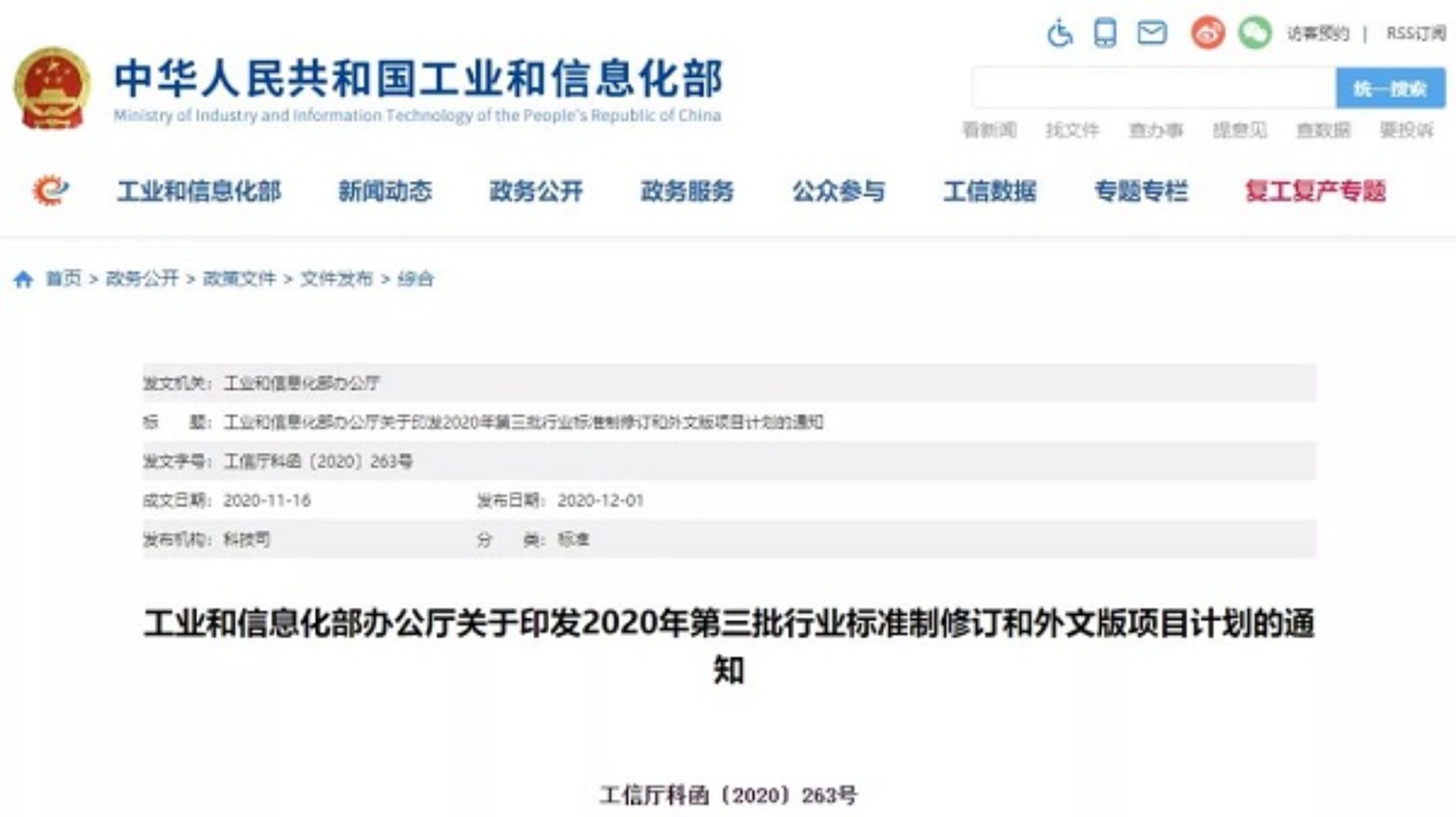 工信部发布17项船舶行业标准制修订计划 2020/12/04 10:41:00 12月1日,工业和信息化部印发了2020年第三批行业标准制修订和外文版项目计划的通知,发布行业标准制修订计划共797项,其中,船舶行业标准制修订计划共17项,包括标准制定计划8项、标准修订计划9项。