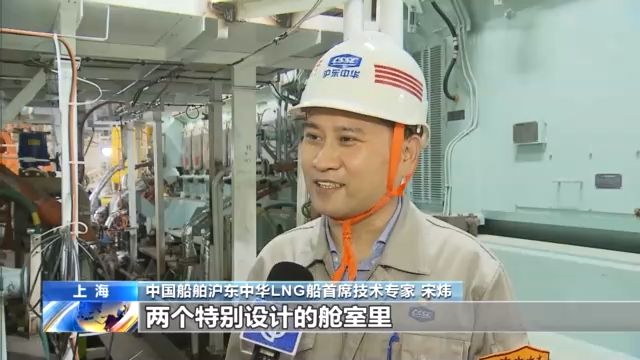 中国船舶沪东中华LNG船首席技术专家 宋炜: 将四个发电机分别布置在两个特别设计的舱室里,这样即使是一处出现大火或其它险情,可以将此处封闭隔离,而另外一处的发电设备仍能够保证船舶正常使用。