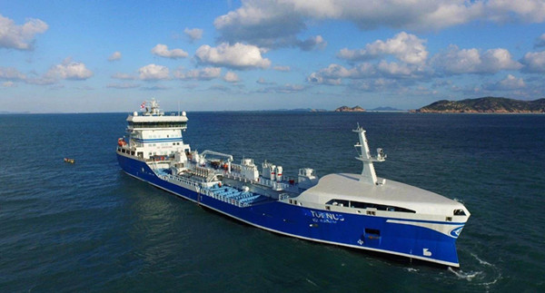 7999吨化学品船船长119米,宽19.4米,设计吃水7.4米,1A冰级符号,入籍法国BV船级社。其装配的,无论是可使主机废气达全球最高排放等级(TierIII)的全球首制主机高压HPSCR装置,亦或是当主推进系统失去功能时可临时充当主推进的兼有take me home功能的艏侧推,都展现了该船绿色、环保、高效、节能、安全的高端性能。