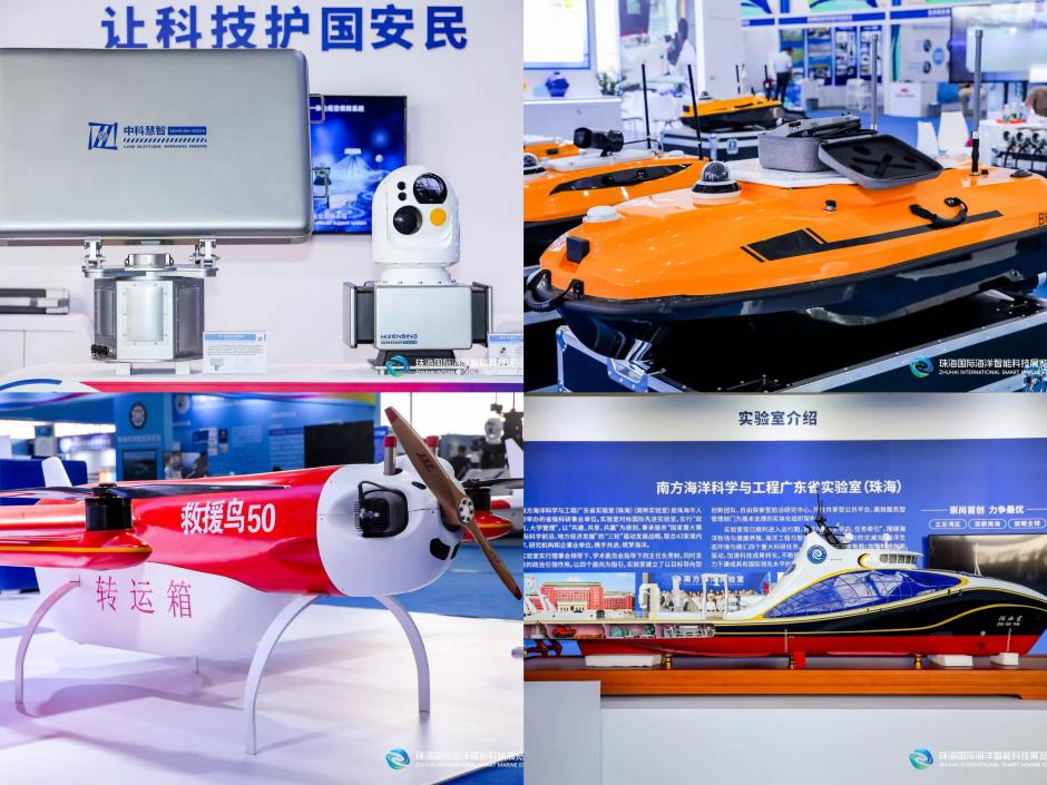 同时,在本届海洋科技展上,众多珠海制造的海洋装备纷纷亮相,吸引众多观众驻足观看,充分展现了“珠海智造”的实力与魅力。其中,南方海洋科学与工程广东省实验室(珠海)携新型深海养殖平台“珠海琴”、底式桁架平台、组合式桁架平台等展品参展,同时还开放“珠海云”号智能型无人系统科考母船与珠海海洋科普中心,供广大参展商与专业观众参观;珠海市海洋集团展示了智能养殖平台,实现养殖过程数字化管理;珠海低空投展示了低空立体交通管理与服务系统、空天地一体化低空数智巡检系统、城市低空应用创新场景等,为城市低空飞行活动的有序进行及城市智慧化、精细化管理提供了强有力支撑。珠海中科慧智科技重点展示了一系列低空保障系统、水预警探测系统、重要区域安防系统、无人机防御系统及机场飞行安全保障系统;珠海小鲸大合科技带来了系列化智能电动游船模型,致力于推动船舶的电动化、智能化和标准化。