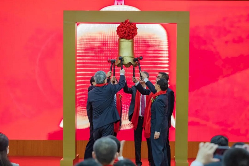 上午9点25分,中国船舶集团党组书记、董事长雷凡培,党组副书记、总经理杨金成,党组成员、副总经理姜仁锋,邯郸市委副书记、市长张维亮,海通证券党委书记、董事长周杰,中国船舶集团旗下汉光重工党委书记、董事长王孟军共同敲响上市宝钟。
