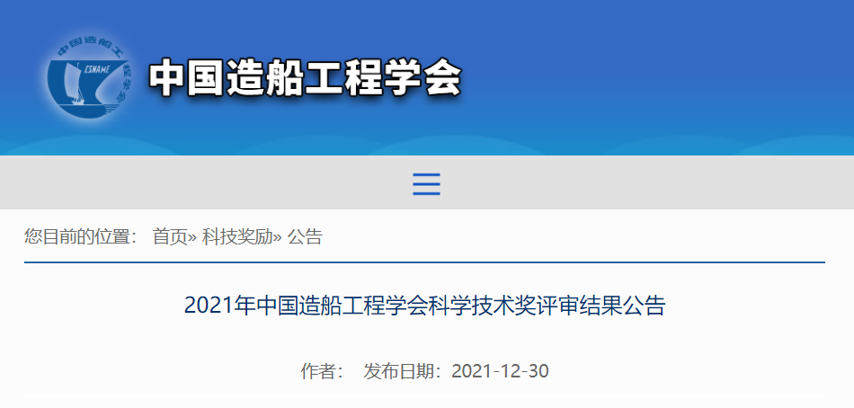 2021年中国造船工程学会科学技术奖评审... 2021/12/30 08:27:01 根据《中国造船工程学会科学技术奖励办法》,学会组织开展了2021年度科学技术奖相关工作,共收到49个单位推荐的161个项目