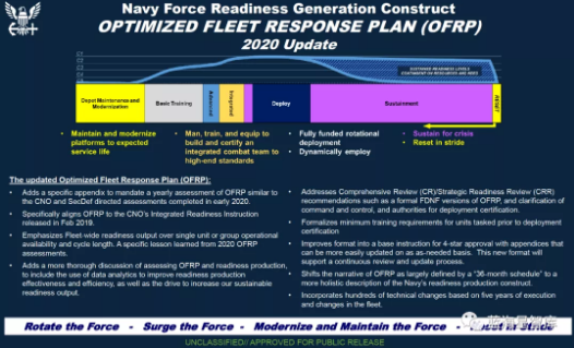 美海军签订《优化舰队反应计划... 2020/12/07 08:40:00 美海军于2020年10月20日签订《优化舰队反应计划(OFRP)2020修订版》(以下简称《修订版》),此修订版是自2014年OFRP推出以来的首次正式更新